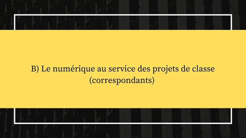Enfin, si l’idée traditionnelle que l’on a de la correspondance est rattachée à l’écriture de lettres, il faudra ici s’adapter car l’écrit en langue étrangère n’entre en jeu qu’à partir du cycle 3. On cherchera donc plutôt à développer la dimension orale de la langue en envoyant et recevant de courts messages audios et / ou vidéos, puis, une fois que les élèves seront plus à l’aise, en cherchant à se retrouver sur des plateformes sécurisées afin de s’appeler directement. Il est à noter que dans ce-dernier cas la préparation de l’appel doit être pensée et répétée afin que chaque élève puisse s’exprimer et se faire comprendre sans trop de difficulté.