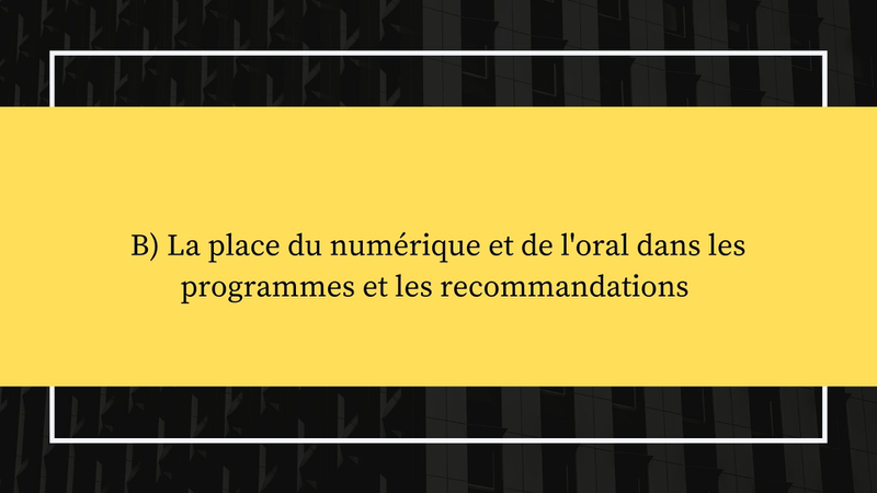 Cette plus-value apportée par ces outils dans l’apprentissage oral d’une langue vivante étrangère est confirmée par le Guide pour l’enseignement des langues vivantes - Oser les langues vivantes étrangères à l’école, conçu par le ministère de l’Éducation Nationale et de la Jeunesse pour les cycles 2 et 3.